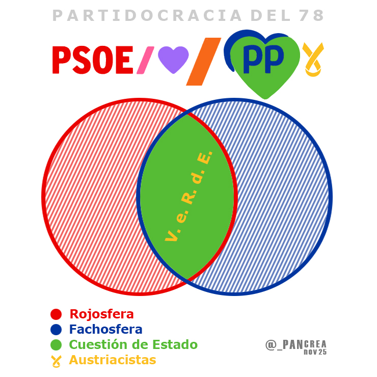 Hacia el año 1977, el PCE de Carrillo hijo aceptó la monarquía católica (se había revisado el año anterior el Concordato para que el Estado mantuviera las relaciones de cooperación con la Iglesia), con la misma bandera que el Reino franquista hasta 1981. Sabemos por Carrero Blanco y también por Franco que lo que se ponía en herencia en el año 1975 por la ley de sucesión vigente (de 1947) era «la España del Movimiento nacional, católica, anticomunista y antiliberal». Asumiendo el reino católico, se asumía la dichosa Unidad de la Patria en una península con cuatro Estados (Portugal, España, Gibraltar y Andorra). La historia se repite periódicamente desde la quinta columna madrileña que derivara en el Consejo Nacional de Defensa, con Carrillo padre, del PSOE, el coronel Casado y el teniente general Miaja disponiendo la que sería a la postre una «rendición incondicional». Unidad percibida de manera muy distinta y enfrentada por los españoles, con las potencias extranjeras administrando nuestro territorio por incapacidad autóctona y endemia embustera, e inhabilitados de facto en 2025 para administrar los recursos del Sáhara Occidental. También entonces, en 1977, los marxistas nacionalistas, los rojipardos de los que no hay mejor ejemplo que en Españita (quizás en Ucranita o Polonita y sus vecinas al norte en el descorrido telón de acero, todas grandes y libres como Españita), aceptaban sillas poltronas en las Cortes preconstitucionales de 1977 (sendas cámaras, hoy vigentes, ideadas y sancionadas durante el franquismo) presentándose a «elecciones generales» y no a Cortes Constituyentes, pues ya las Cortes (poder legislativo) ya las había constituido el franquismo.